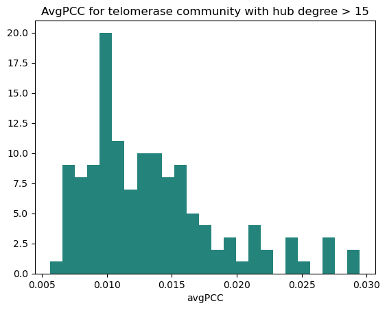 A subgraph of the telomerase community was created and avgPCC calculated, this time giving a PCC cutoff of 0.013.