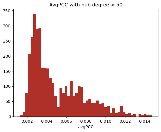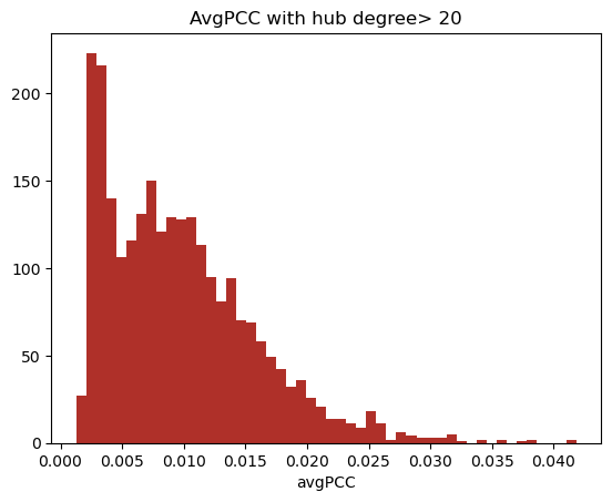 Average PCC is a value given to each hub node in the network. It is the average value of r_{ij} between the node i and each of its neighbours j.